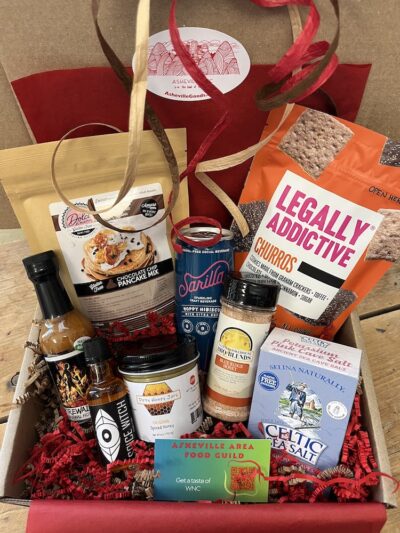 Discover the flavors of Asheville with our curated Food Guild Box — a thoughtfully assembled collection of locally made goods from the heart of Western North Carolina. From pantry staples to unique treats, every item tells the story of a local maker. Order yours and be part of something bigger.